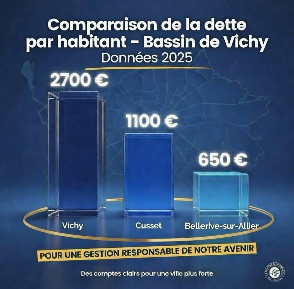 La dette de Vichy est donc environ 2,5 fois plus élevée que celle de Cusset et près de 4 fois plus élevée que celle de Bellerive.