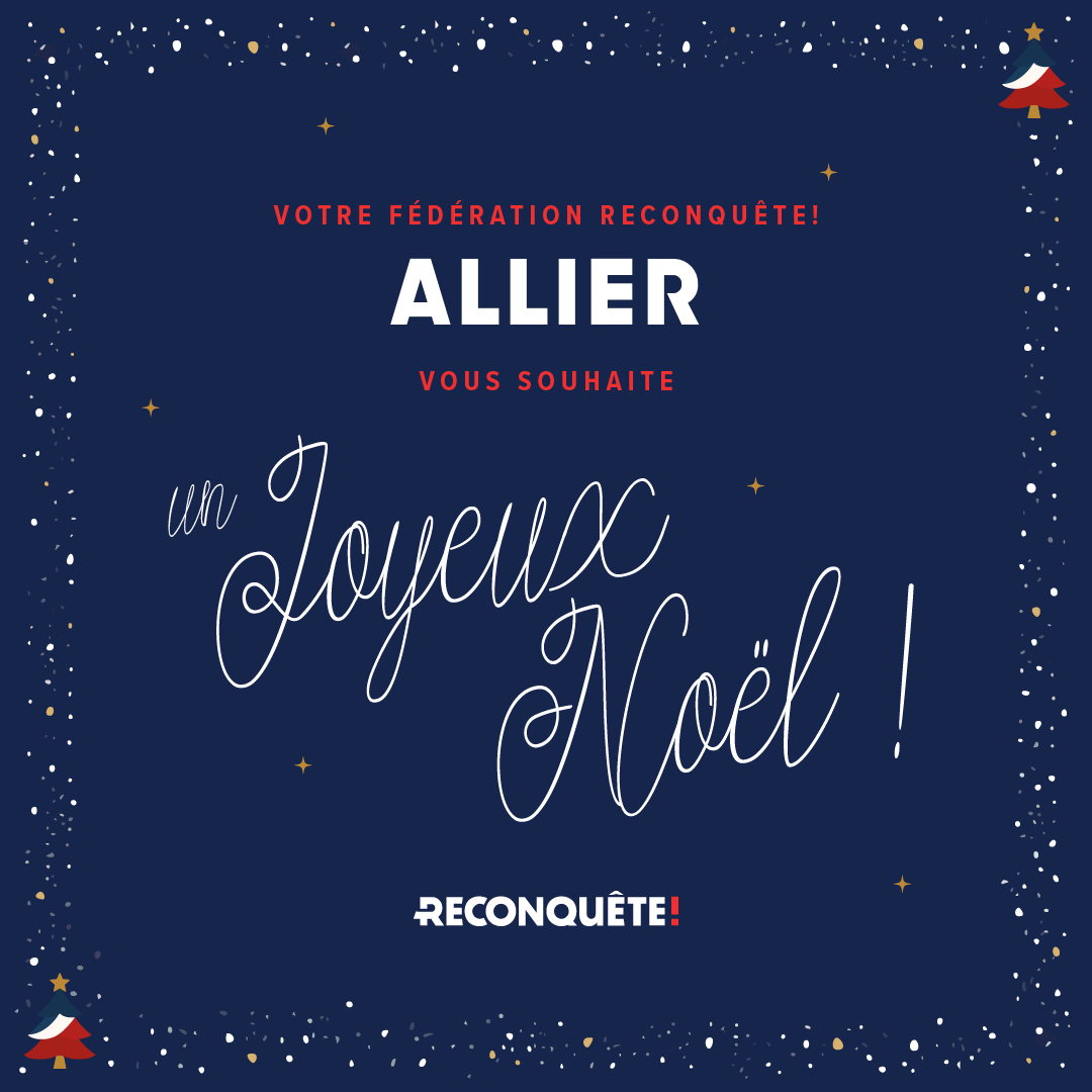 Votre fédération Reconquête vous souhaite un très joyeux Noël. Que cette fin d'année vous apporte des moments de joie et de bonheur avec vos proches.