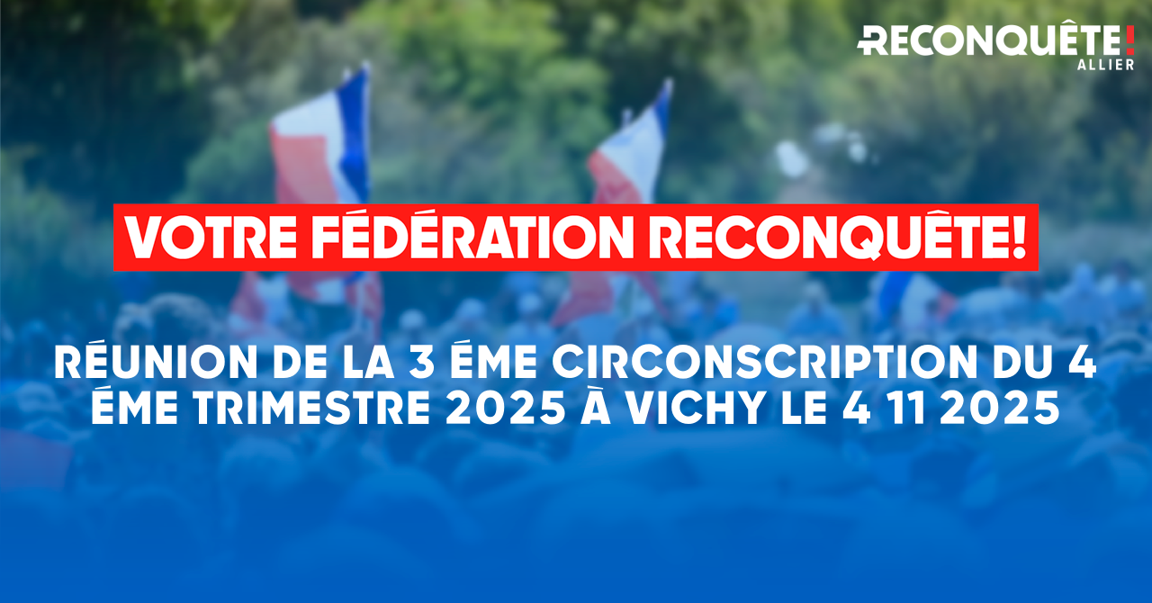 « Une quarantaine d’adhérents de Reconquête de la 3 éme circonscription se sont réunis le 4 Novembre 2025 pour évoquer différents sujets d’actualité. Après un point général sur la situation politique actuelle, le Délégué Départemental Reconquête, a orienté les débats :